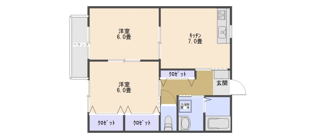 エアコン、洗面化粧台、クローゼット3ヶ所