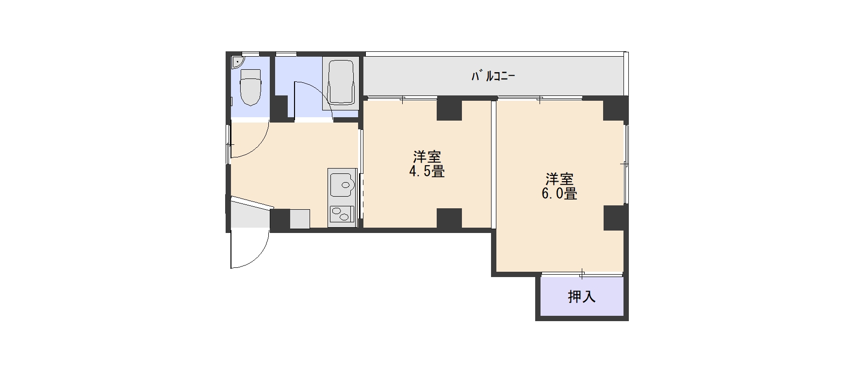 間取 | 2K | 間取詳細 | 洋6・洋4.5・K3 |
