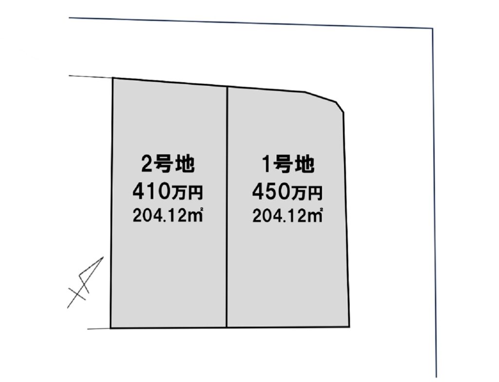 | 価額 | 1号地:450万円(角地) 2号地:410万円 |