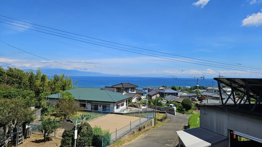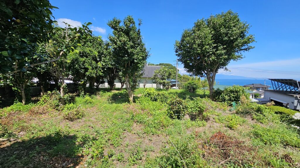 錦江湾を一望できる土地広々140坪の物件です。